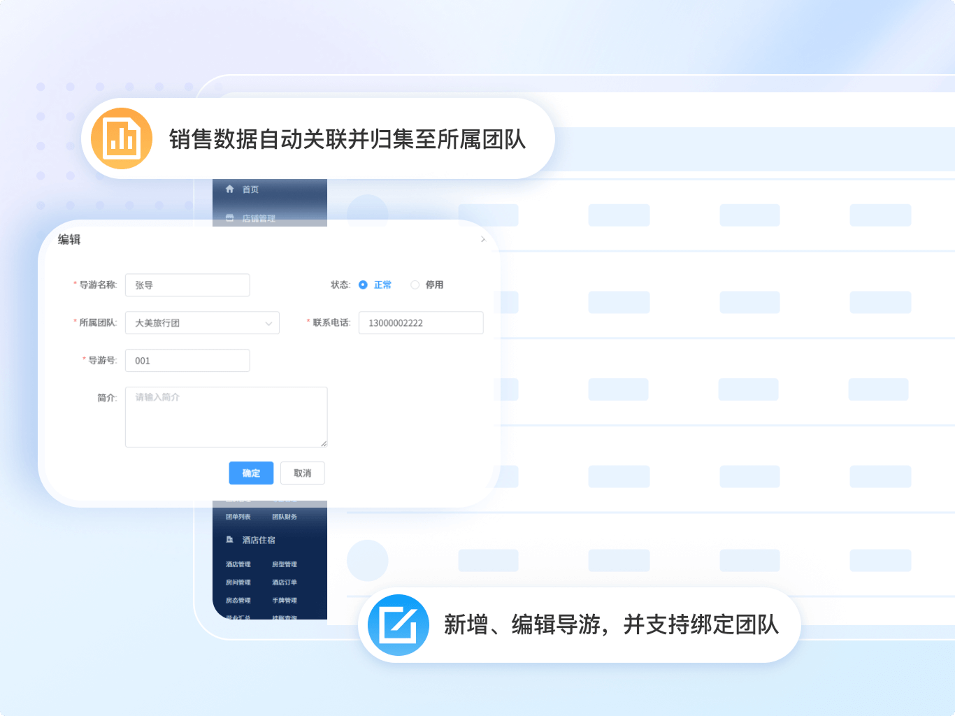 - 大幅提升管理效率告别繁琐的手工登记和Excel表格,团队信息、团单信息、团队财务数据全流程线上化、自动化管理,省时省力。