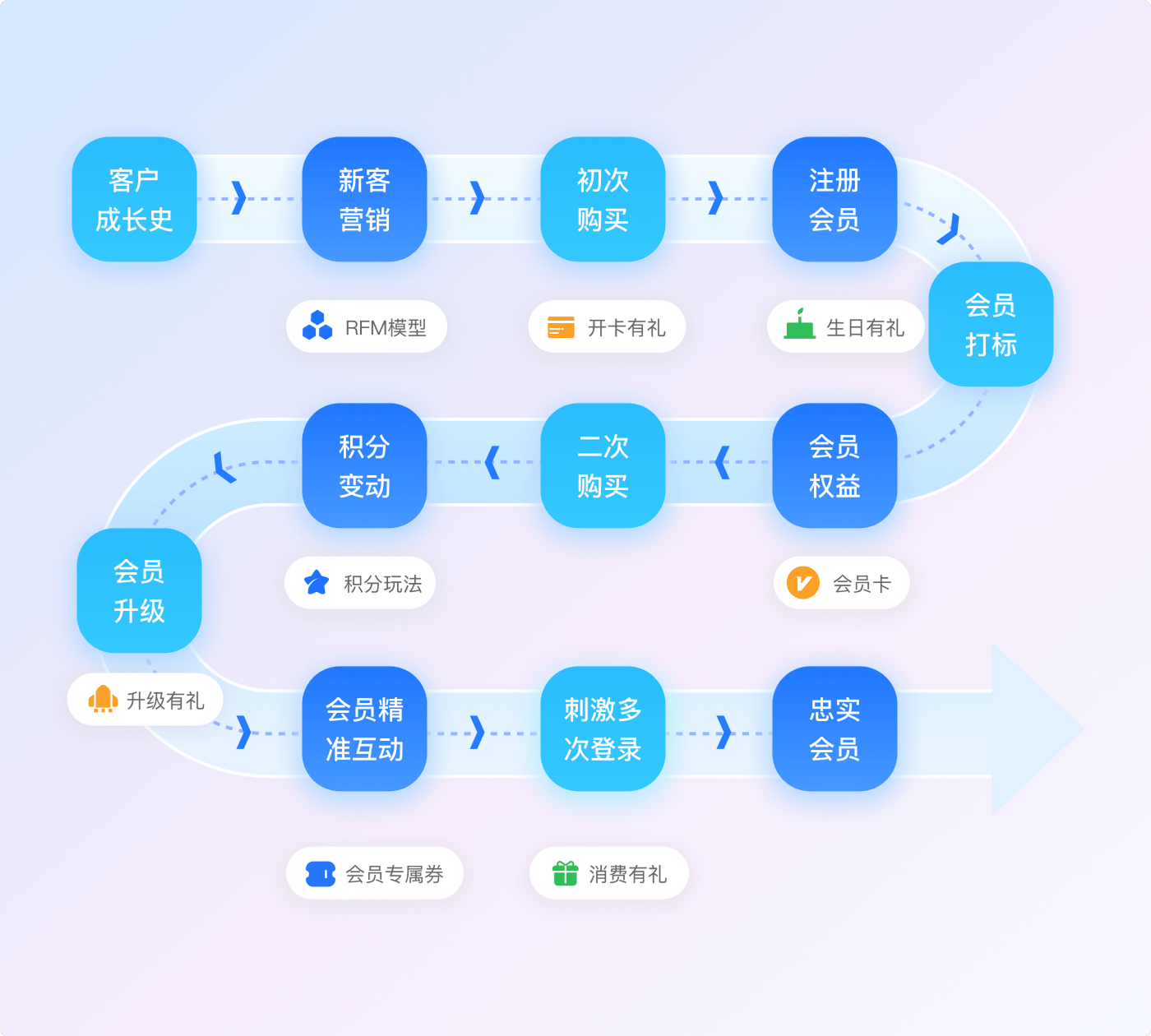- 多元营销场景,覆盖客户全旅程从“入住前-入住中-离店后”全链路切入,我们提供丰富的营销工具组合,精准触达客户每一处需求
