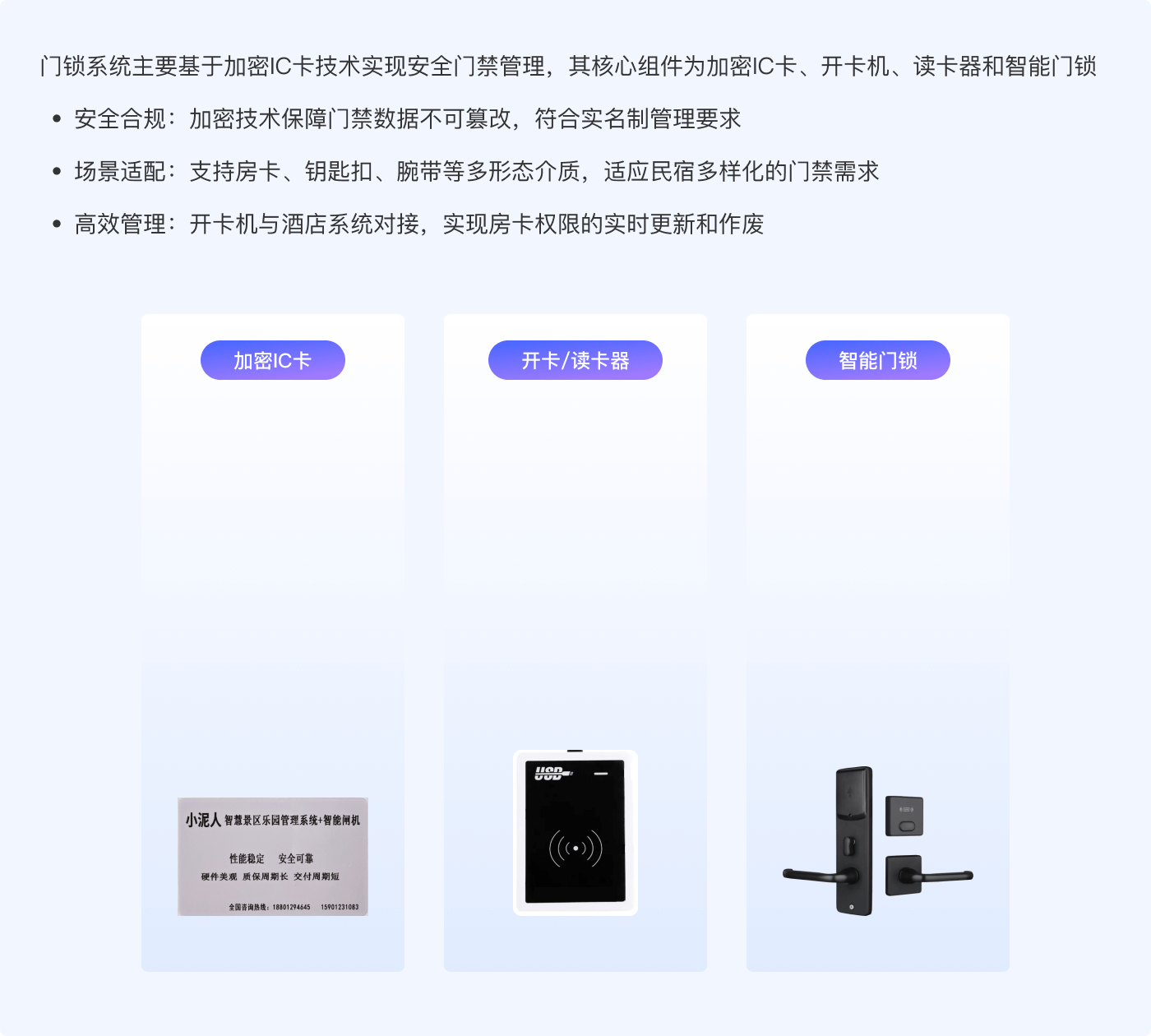 - 门锁系统 - 通过硬件协同与加密技术,为酒店民宿提供安全、灵活的门禁解决方案